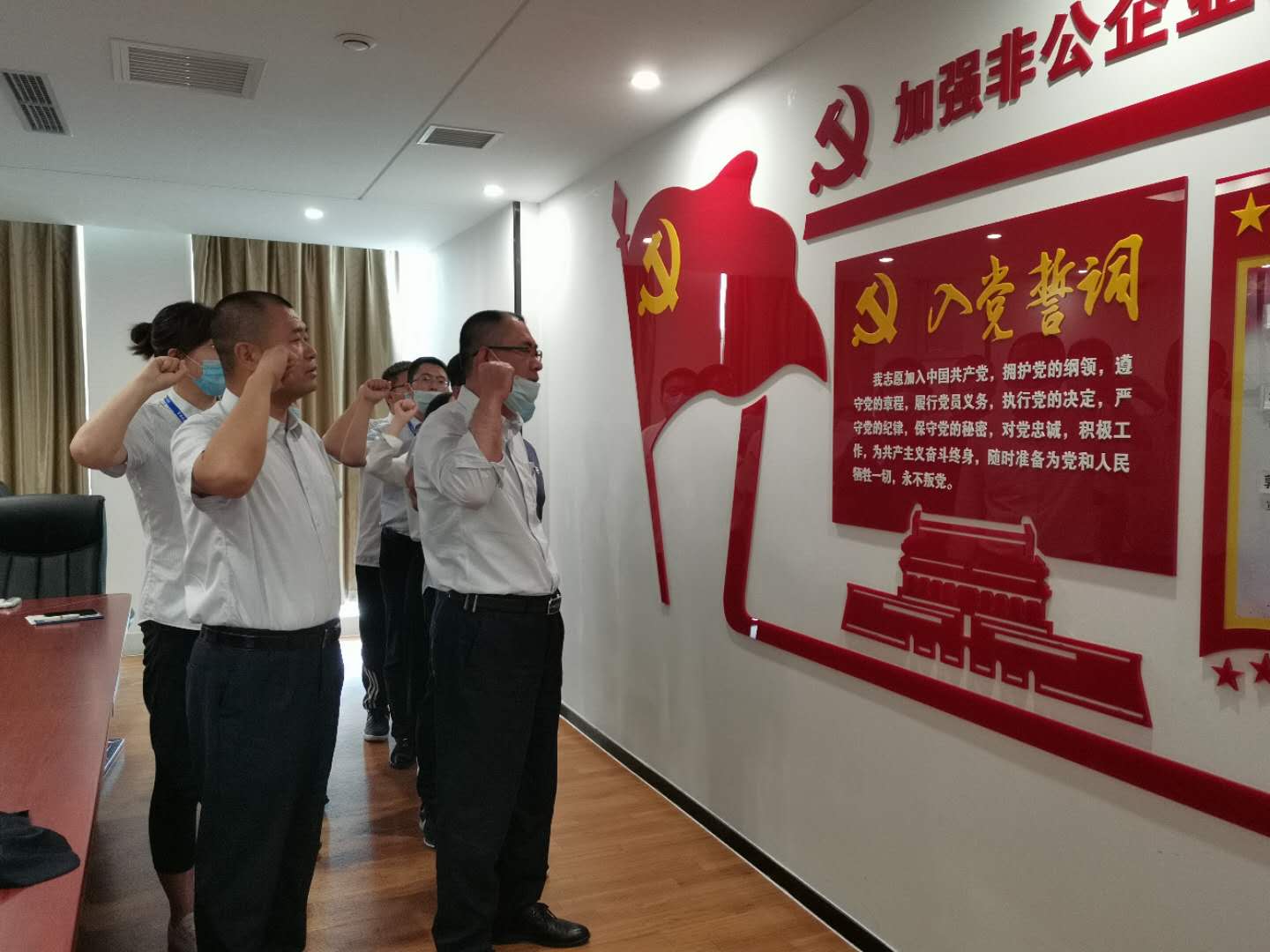 为迎接中国共产党成立99周年,进一步增强党组织的凝聚力和吸引力,带领党员积极向党组织靠拢,活跃和丰富党内文化生活,加强党对企业发展的指引作用,本月28日,博科党支部举行了“七一”党建特别活动,支部书记讲党课、重温入党誓词、学习全国党员教育电视片,坚定广大党员的理想信念,增强党员的党性修养,凝聚红色力量。总裁李震及核心管理层出席活动。