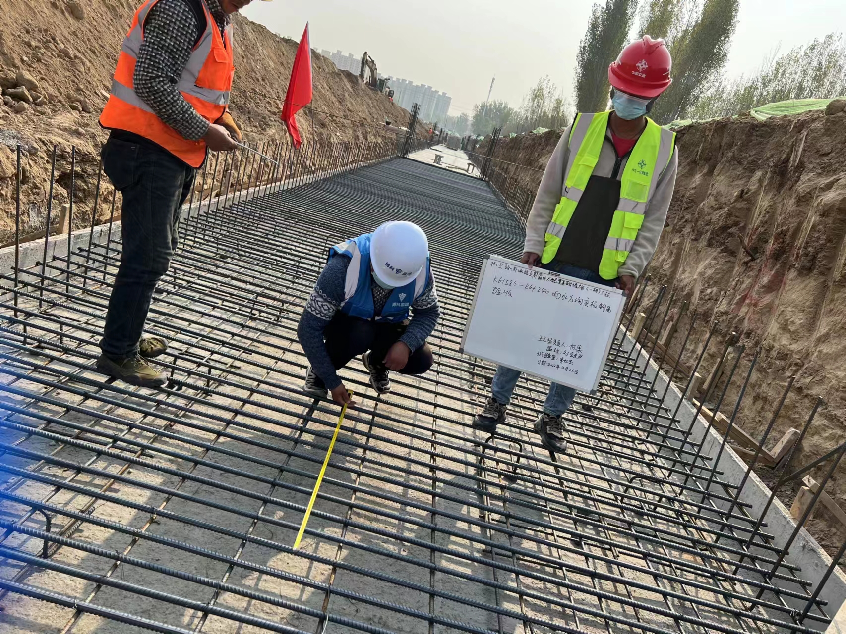 据项目总监罗丙亮介绍,该项目道路总长约 6.52 公里,分两个工区进行施工作业,目前一号科融道北渠桥桩基已完成,专业管线预计1月5号收尾。